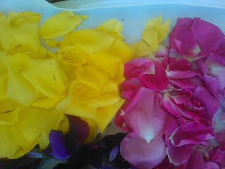 Este ano, as minhas roseiras parece que adivinharam que preciso delas, pois têm-me presenteado com tanta abundância, tanta, que a minha casa se enche de caixas e cestos cheios de pétalas cada vez que saio, ou por vezes, até as apanho pelo caminho!!